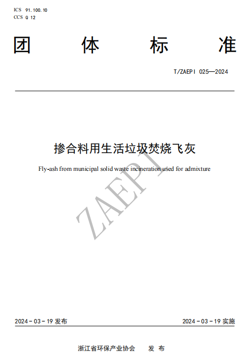 《摻合料用生活垃圾焚燒飛灰》標(biāo)準(zhǔn)號(hào)T/ZAEPI 025-2024,該標(biāo)準(zhǔn)由浙江京蘭環(huán)保科技有限公司和浙江大學(xué)主編,由浙江省環(huán)保產(chǎn)業(yè)協(xié)會(huì)于2024年3月19日批準(zhǔn)發(fā)布,2024年3月19日起實(shí)施。文件規(guī)定了摻合料用生活垃圾焚燒飛灰的術(shù)語和定義、技術(shù)要求、試驗(yàn)方法、檢驗(yàn)規(guī)則、包裝、標(biāo)志、運(yùn)輸和貯存。文件適用于低溫?zé)岱纸饧八唇舛竟に囂幚砗蠓?HJ 1134規(guī)定的摻合料用生活垃圾焚燒飛灰,為后續(xù)飛灰處理產(chǎn)物的產(chǎn)品化進(jìn)一步拓寬了應(yīng)用場(chǎng)景。