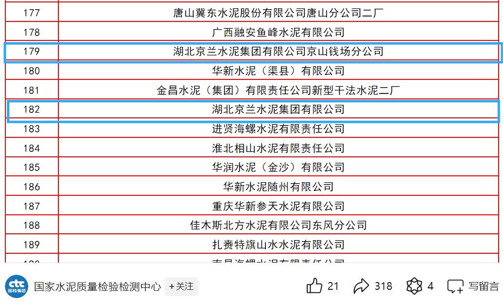 8月2日,備受矚目的“天寶華瑞杯”全國第十九次水泥化學分析大對比獲獎名單正式揭曉,在這場全國性的水泥行業(yè)質量競技中,京蘭5家水泥公司均榮列榜單。